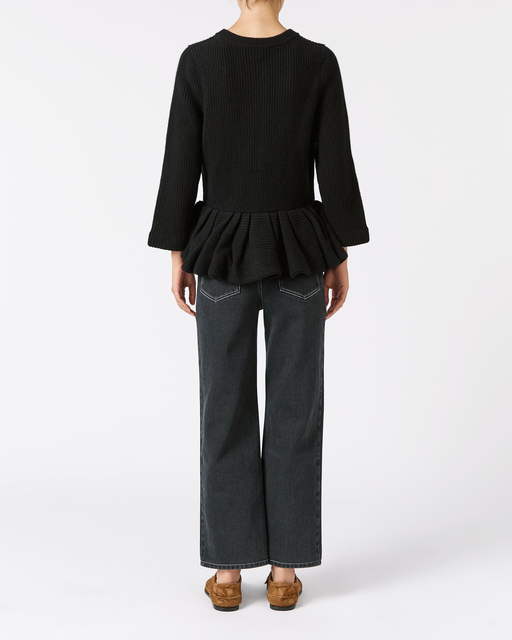 BLACK PEPLUM CASHMERE CARDIGAN